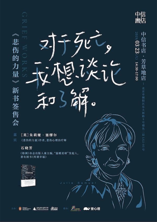 3月23日,《悲伤的力量》作者、英国悲伤心理治疗先锋人物朱莉娅·塞缪尔做客中信书店·芳草地店,聊一聊如何面对、应对身边人的离开,如何处理自己与他人的关系、创造生命的意义。
