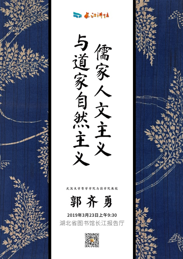儒道两家本属同源,历史上不断互动互补,相辅相成。儒道之间有批评有争论,同中有异,异中有同,正因此而能“和而不同”,互为体用,成为中国文化的主潮。本次讲座,武汉大学哲学学院与国学院郭齐勇教授将结合自己的研究,详细剖析儒家人文主义与道家自然主义。