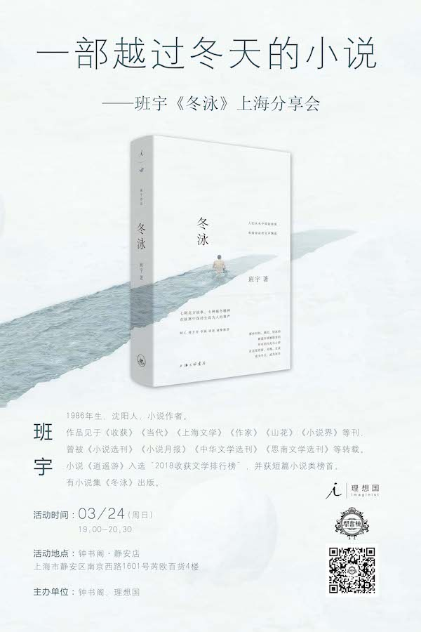《冬泳》是作者创造的“昨日世界”,这里遍布萧索的工厂、游走着昔日我们熟悉的身影:印厂工人、吊车司机、生疏的赌徒与失业者……他们生活被动,面临威胁、窘迫,惯于沉默,却又怀揣温柔的幽默。《冬泳》是写给北方的情书,是写给你我的备忘录。3月24号晚,班宇带着他的《冬泳》做客钟书阁,跟大家唠唠这部“越过冬天的小说”。