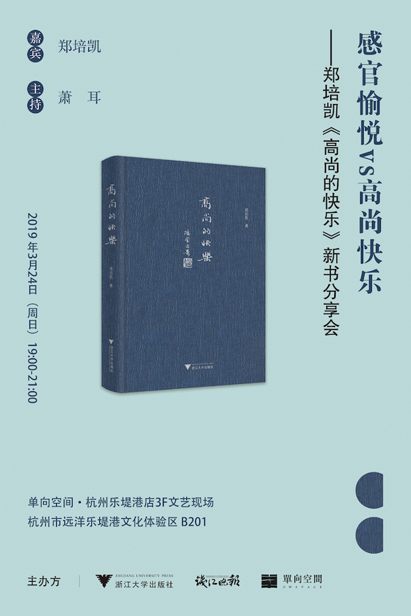 《高尚的快乐》是郑培凯先生近年来在历史和文化中寻找雅趣和韵味的一份珍贵心得。3月24日晚,郑培凯《高尚的快乐》新书分享会在单向空间杭州店举行,期待您跟随郑培凯先生来一次语言和文化的愉悦之旅。