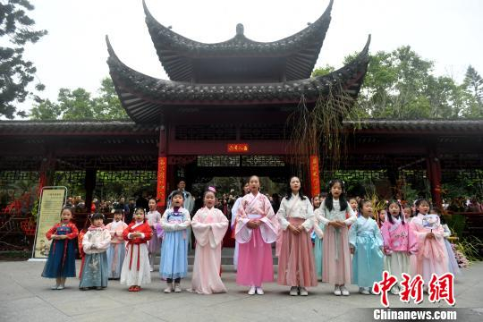 己亥年花朝节传统节俗文化活动今年吸引了更多身着汉服的孩童参与。 吕明 摄