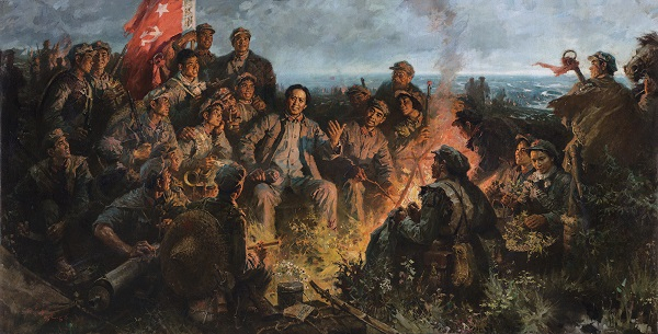 《革命理想高于天》用写实的手法和浪漫的光影,让长征途中的荒凉湿寒与篝火和壮士火热的革命豪情形成对比,通俗易懂的形式做到了对英雄人物的歌颂,“红”、“光”、“亮”的时代美术特点也显露在其中。