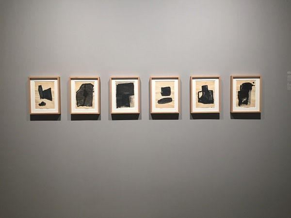 这六件作品是杨诘苍1989年,获选参加巴黎庞比度中心的“大地魔术师”展览中《千层墨》系列的创作手稿。这个系列是杨诘苍每天在同一画幅上涂上一层又一层的水墨,重复又重复,直至宣纸吸饱水墨而完成。艺术家对于墨的使用回避了具象的图案,也放弃了笔墨中心的概念,抽象水墨实验是对传统媒材的“提炼”,也是艺术家对内外界环境、政治、社会等问题的概念表达。