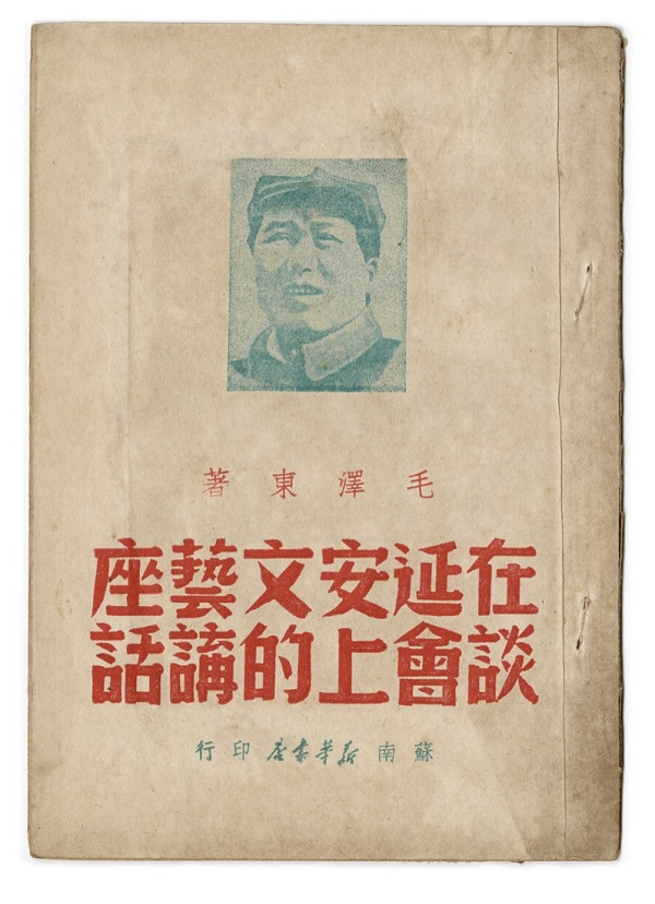 泰康空间自2003年创办至今,“只收不卖”是一个原则。与国外私人收藏机构动辄万件的藏品相比,泰康收藏的千余件艺术品显得更为谨慎。“站在当下看历史,面向未来”是泰康空间的空间理念,这个理念也显露在“中国风景”之中。此次展览不同于2011年于中国美术馆首次展出,以及2015年于武汉大学万林艺术博物馆的呈现,“中国风景”打破编年史的展示方式,而是将1942年至改革开放前,改革开放后,以及由当代面向未来延伸的三种历史时间并置,透过三个时期中最富有时代敏感性的艺术品,将线性时序转化为关于“国家与个人”、“神性与日常”、'传统与现代等九个主题,塑造观展过程中对比的冲突感,呈现出一种中国独有、极具特色的风景。 《在延安文艺座谈会上的讲话》,苏南新华书店印行,1949年6月