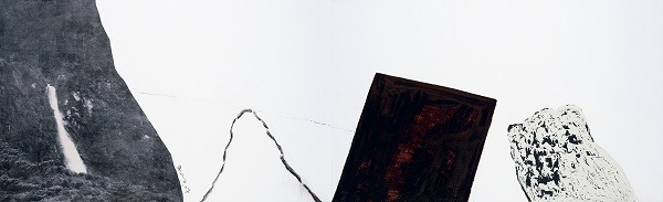 对于抽象形式的主观选择可能在艺术家的某个创作阶段中持续发展,或是在同一幅画面表现出重复性。事实上,绘画表面具有的形式感是由艺术家的态度或者说创作的方法支撑的。从非焦点透视的“平面化”绘画,到由充满秩序感的视觉表面所指向的对于城市以及个体经验的思考,我们会发现抽象绘画逐渐承载了更多观念的物质化形态。艺术家对于绘画形式的探索,无法简单地通过写实或现代,具象或抽象等二元对立的概念分析。他们试图构建的工作方法与态度似乎扮演了更加关键的角色。 尚扬,董其昌计划-7,布面油画(两联),128×416cm,2007 杨诘苍,《千层墨》大地魔术师展览画稿,1989