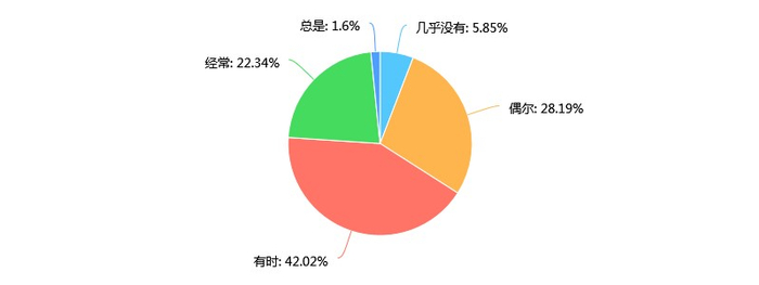 此次的问卷显示,接受调查的高校夸夸群成员中,有42.02%人“有时”会在现实中得到周围人的夸赞,28.19%的人“偶尔”会在现实中得到周围人的夸赞,22.34%的人选择了“经常”在现实中得到周围人的夸赞。
