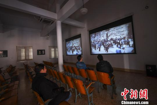 云冈石窟文化馆放映室内播放着《周总理陪同蓬皮杜访问大同》的纪录片。 武俊杰 摄