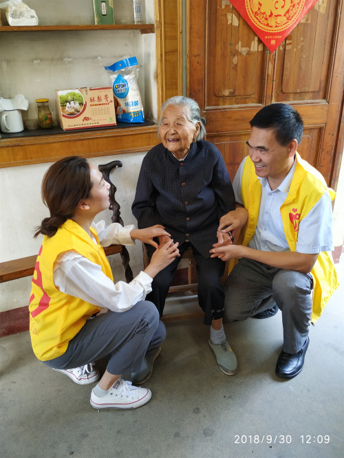 2018年9月,杨雅舒与养父一起做公益,上门看望独居孤寡老人。