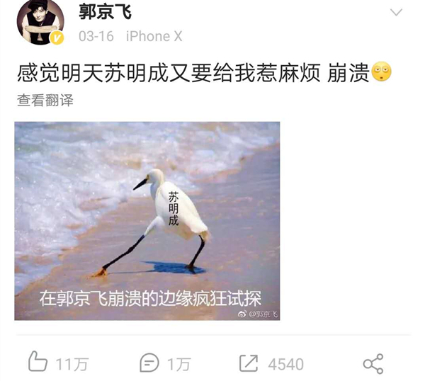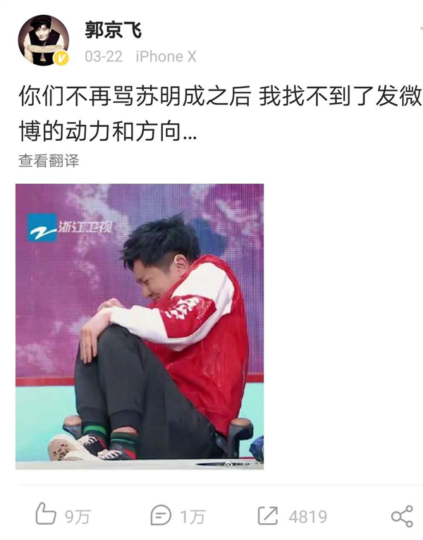 作家张佳玮在微博夸郭京飞,说电视剧限制了他的表演,说他当年在舞台上演戏,能让观众“慑服得神为之夺”,郭京飞就羞涩了,觉得自己“只是有点表现力,雕虫小技”。
