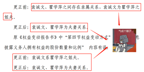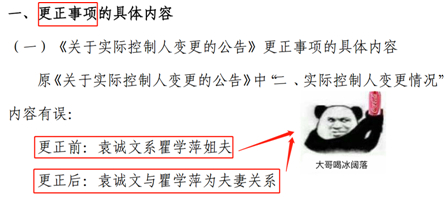 公司公告中反复把两位股东关系颠来倒去地写错,不经让人产生疑惑:这究竟是实控人及权益变动报告,还是大型情感纠纷公告呢?