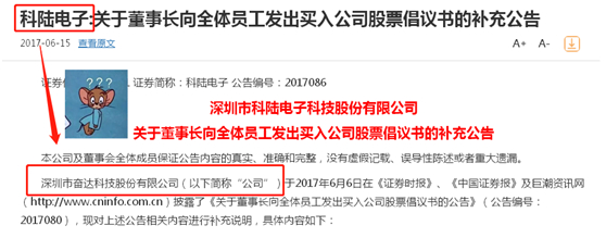 2017年6月15日,科陆电子(002121.SZ)发布更正公告称,在14日晚间的一份公告中,误将本公司名字“深圳市科陆电子科技股份有限公司”写成“深圳市奋达科技股份有限公司”。