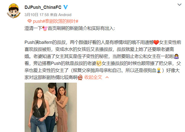 Push中国官方后援会官方微博对网传剧情的澄清,看上去依旧非常狗血。