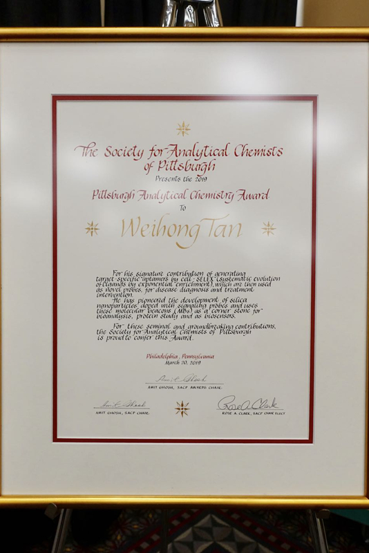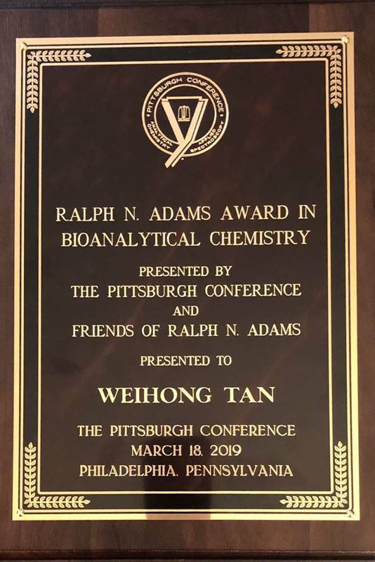 近日,在美国费城召开的匹兹堡分析化学和光谱应用会议暨展览会上,中国科学院院士、发展中国家科学院院士、上海交通大学谭蔚泓教授因核酸适体在生物传感,光谱分析,化学生物学、纳米医学和分子医学等方面取得的诸多突破性、原创性成就,同时获得拉夫·亚当(Ralph N. Adams)生物分析化学成就奖与匹兹堡分析化学成就奖(Pittsburgh Analytical Chemistry)。值得一提的是,这两项大奖是自2004年谭蔚泓院士首次拿到匹兹堡成就奖(Pittcon Achievement Award)之后再度荣获大奖,成为匹兹堡会议历史上第一位在同一年拿到这两个科学成就大奖的科学家。
