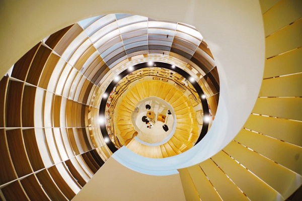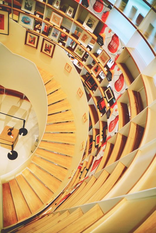 旋转楼梯是这家书店的建筑特色