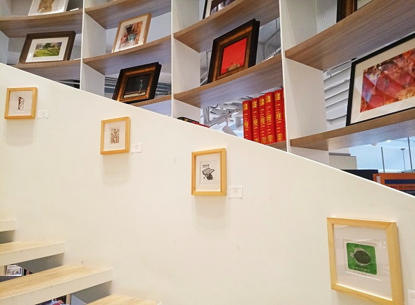 沿楼梯展示的版画作品