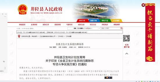 28日下午,井陉县卫生健康局(即原井陉县卫生和计划生育局)扫黑办一位工作人员向澎湃新闻证实,该局曾发布过前述文件。