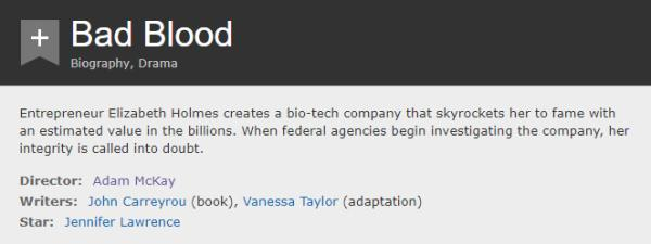同时热衷于将这类故事搬上大银幕的好莱坞也早就已经上手,“大表姐”詹妮弗·劳伦斯将会出演极具“现实扭曲力场”的伊丽莎白·福尔摩斯,而幕后班底则来自《大空头》与《副总统》,大概明年早些时候,亚当·麦凯又会带着这部极具戏剧张力的作品再次“冲奥”。