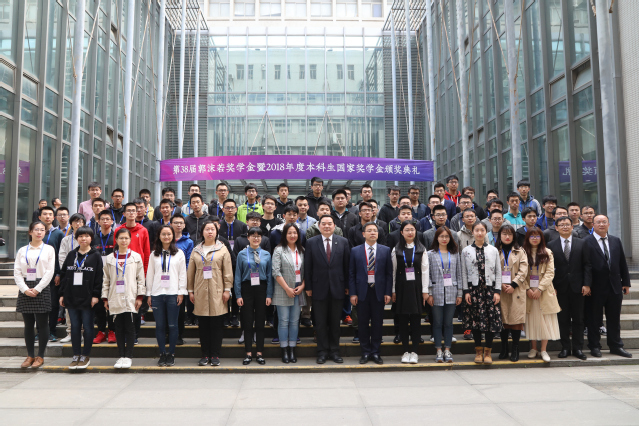 3月30日下午,第38届郭沫若奖学金暨2018年度国家奖学金颁奖典礼在东校区理化大楼西三报告厅举行。33名同学获得第38届郭沫若奖学金,101名本科生获得2018年度国家奖学金。