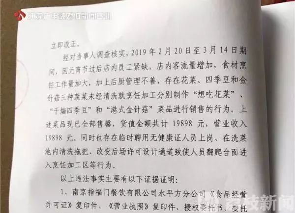 现代快报记者了解到,违法所得主要是指,该店承认在2019年2月20日至3月14日期间,存在将花菜、四季豆和金针菇三种蔬菜未经清洗,就制作菜品进行销售,货值金额共计19898元。而罚款397960元,是按照《食品安全法》最高20倍予以罚款,属于顶格处罚。