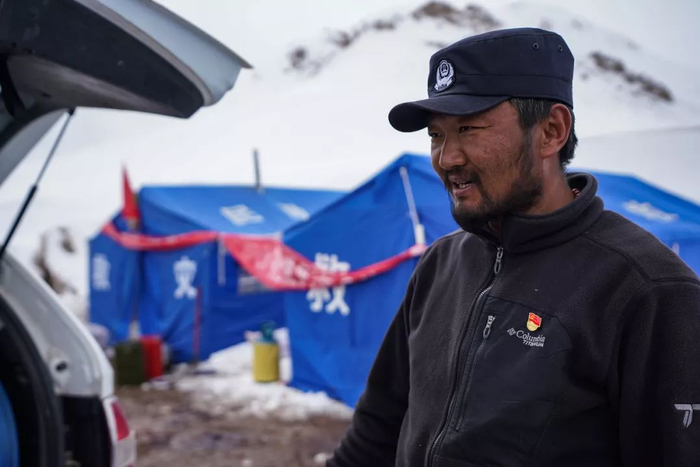 一脸胡须,通红的脸颊,看着眼前的他,无法想象他还是以往那个帅气的人民警察。这是青海省玉树藏族自治州杂多县公安局扎青乡派出所所长达哇扎西在抗雪救灾一线的第45天了……