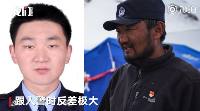 达哇扎西入警时的照片和抗雪救灾45天归来时照片对比