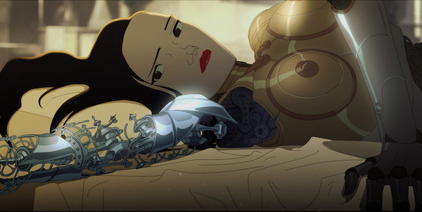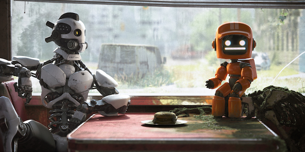 如果人类灭绝,地球上的猫主子没人抚摸,怎么办?如果酸奶成为统治阶层,管理这个星球的运行,又是什么样的场景?宇航员在太空中没系安全绳,却不慎飞离太空站,要如何返回…… 最近,Netflix热播的系列动画短片《爱,死亡和机器人》回答了这些“奇怪”的问题。该系列动画片共有18集,除去两集为动画出品方的原创作品外,其余16集都分别改编自不同的科幻小说。动画片或者说小说故事的起点,就是这些奇异的脑洞、天马行空的设定。今天,让我们一起来读一读动画背后的文本,动画片到底简略了哪些内容?到底是动画好看,还是原著作品好看?什么样的作品更容易被改编成动画片? 用小图标表示的《爱,死亡和机器人》各集片名 刘宇昆和中国风 这16部改编作品,原作分别出自11位作家之手,迈克尓·斯万维克、约翰·斯卡尔齐等人有多篇作品被改编。在这11位作家中仅有刘宇昆一位为华裔,动画改编的是他的短篇小说《狩猎愉快》(Good Hunting)。由于华裔背景,刘宇昆笔下的故事和设定有十足的中国风味,提笔开场,直到中途,像是与读者讲述了一个《聊斋》故事。 故事发生在清末,道士父子逐杀狐狸精,在老道士引导下,小道士一路追逐狐狸精,直到其所居的古寺中。老道士将狐狸精斩首,小道士无意间发现狐狸精的女儿,犹豫之后,还是放走了小狐狸精。往后多年,小道士和小狐狸精成为朋友,故事的矛盾焦点也从道士和狐狸之间转向了他们与外部世界的对抗。 随着火车铁轨在古老的中国土地上延伸,道士和狐狸精发现自己原有的古老法力逐渐丧失,为谋得生存,他们来到香港。小道士成了机修工,小狐狸精沦为街头的卖春女,二人交流不多。一天夜里,小狐狸精失神地来找小道士,原来是港督的儿子喜欢机械更胜于肉体,因此,将小狐狸精私养后,择机把她的身体用铁片和齿轮取代。小狐狸精想要复仇,听闻此事,已是机修工的小道士用高超的机械技艺将她改造得更加强大,小狐狸精借助这些她所痛恨的机械,重获“法力”。 《狩猎愉快》剧照 中国故事的外衣,包裹现代社会的寓言,可以说是典型的刘宇昆风格。如果往前追溯,还有《结绳记事》、《手中纸,心中爱》等名篇与此相类。动画片以中国动漫的风格呈现,配乐中也有不少锣鼓响板等中式配器出现。除了声画效果,在阅读原著后,笔者发现虽然动画作品基本准确地反映原著情节,但原著本身存在的蒸汽朋克风格,原本只是小说中的一个面向,到了动画里得以放大,以至于小说中原本以奇幻、反思与批判为主,等到观看动画时,则会给观众留下混搭、拼贴、重组的印象。 当然,动画的时间长度与观众观影承受力要求制作方更精简地提炼主线,因而,动画中主要以小道士和小狐狸展开叙述,将原著中的支线人物做了精简处理。但是,就在这些精简处,有时迸出作者几句深邃哲思,这些内容难以呈现,也是动画的可惜之处。例如,当火车通达后,妖怪们法力消失,人们也鲜少找老道士除妖,老道士郁郁自尽,作者写道: 我的心已经感觉不到悲伤。我将他的尸体放下来,这一刻,突然觉得他与他一生都在猎杀的妖邪是一样的——依赖古老的灵气维持生命。当灵气流失殆尽、无法挽回时,他们不知道该怎么活下去。 《狩猎愉快》剧照 约翰·斯卡尔齐的“幽默科幻” 人类灭亡后,三个机器人来到地球上,地球上的所见所感对它们而言都充满新鲜感。西餐店里,看着发霉的汉堡,机器人讨论人类要怎么吃汉堡,如何给自己补充能量。盯着篮球场上的篮球,机器人又发了懵: “人类用这玩意干什么?” “他们不干什么,他们弹它们。” “对,就是这样,他们是人类,把物体弹来弹去已经接近他们认知水平的极限了。” 《三个机器人》剧照 最精彩的反转在于人类灭亡后,再没有人抚摸猫,于是,当机器人的手指从猫毛间滑过时,猫咪获得巨大的愉悦感,并呼朋引伴而来,享受这久违的抚摸。作品在此戛然而止,对人类命运的反思最终落脚于对猫主人的臣服,不论是人还是机器人,共同点是:都会被猫俘获。 这部作品原作是约翰·斯卡尔齐的《后人类时代三个机器人的经历》(Three Robots Experience Objects Left Behind from the Era of Humans for the First Time)。人类为什么会灭亡?在作品中,斯卡尔齐直指人类对环境的破坏,“他们的狂妄结束了他们的统治”。但在宏大命题的讨论与思考后,最终的落脚点和结尾锁定在猫身上,给读者以小小的彩蛋。 《三个机器人》剧照 幽默、怪诞是斯卡尔齐的科幻作品里常有的品格,动画片剧组似乎也非常欣赏这一品质,因此,除去这集,还选取了他的两部作品进行改编,分别是《当酸奶统治世界》(When the Yogurt Took Over)和《多元历史》(Alternate History Search Results)。在这两部作品中,斯卡尔齐同样提出了“如果酸奶统治世界会怎样”、“如果历史重写,希特勒早死会怎样”的问题。这些作品引人入胜之处也正在于它们半严肃、半玩笑的腔调,可以说是:认真提问,随性作答。 《多元历史》剧照 其实,作品片名是《爱,死亡与机器人》,标题之下有“爱”、“死亡”、“机器人”三个词,往深处看去,如果对这些原著作品做简单的分类,大抵“爱”和“死亡”指向的是富有思考、强调情感元素的软科幻,而“机器人”又是典型偏向工具和机械的“硬科幻”。这样的二分对立分析已非当前科幻界的主流,但用于初略的观察分类仍然有效。 以软科幻、硬科幻的标准来