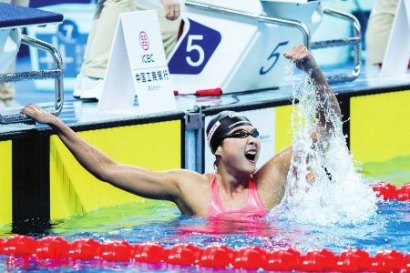 而在第三项女子1500米自由泳决赛中,由于李冰洁退赛,比赛成了王简嘉禾的“独角戏”,她一路领先最终以15分49秒85的成绩夺冠,这比她年初创造的亚洲纪录仅差3秒。当晚,两人进行了本次比赛的第四项较量--女子800米自由泳决赛。