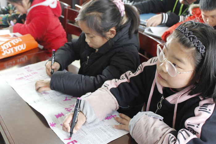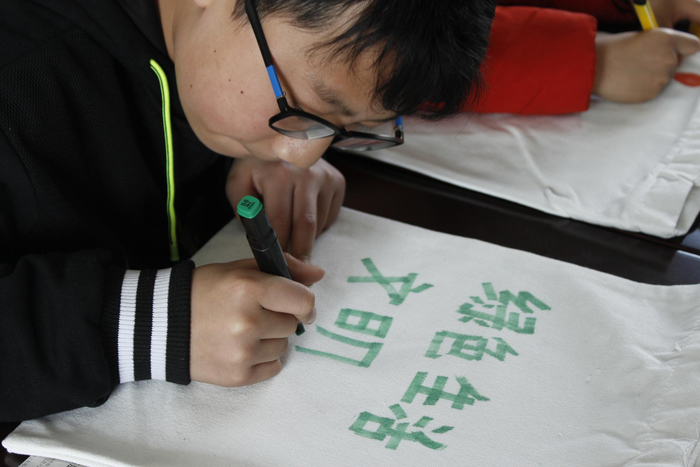 原标题:小朋友们学写“POP字体”,制作创意环保袋