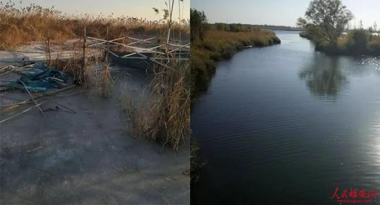 △唐河污水库修复前后(左图为中交一公局供图,右图王京卓摄)