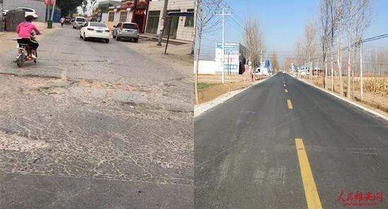 △容贾路翻修前后(左图容城县交通局供图,右图王红摄)
