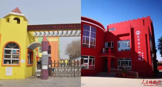 △北京市六一幼儿院雄安院区挂牌前后。(左图朱峙委摄,右图贾东亮摄)