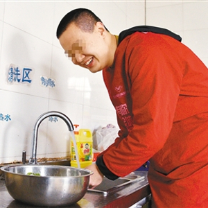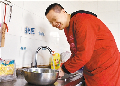 飞飞(化名)在康复机构帮厨,能够独自完成一些简单的工作。记者 王健 摄