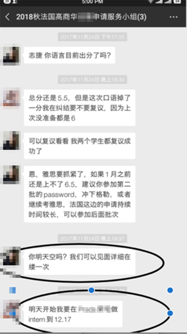 2017年4月20日,牛顾问在微信聊天中还提及“不管签顺顺还是学为贵,都是我亲自负责你全程的服务”以及“之后把我推荐给了你的学弟学妹,我这边可以有每个学生1000元的奖学金发放”。
