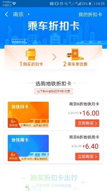 支付宝日前推出了地铁六折卡,分为周卡、月卡两种选项。
