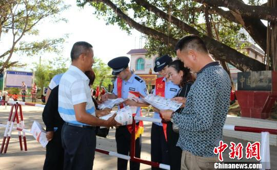 移民管理警察向祭祖华侨宣讲注意事项。 陆成栋 摄