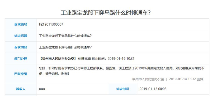 终于,在今年1月中旬,福州市12345便民服务平台给出了最后通车时间——6月份!