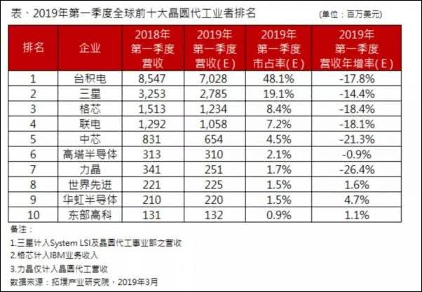根据市场咨询机构TrendForce最新报告数据,今年一季度晶圆代工厂商营收排名中,中芯国际位列第五,市占率预计将达4.5%。排名第一的是台积电,市占率达达48.1%。