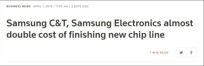 据路透社4月1日消息,三星电子位于华城的工厂主要用于新7纳米EUV光刻工艺的生产。上周五盘后,三星物产在向韩国证券交易部门备案的文件中显示,三星物产和三星电子的半导体生产线建设成本几乎翻了一番,项目总成本如今高达1.46万亿韩元(折合12.9亿美元)。