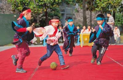 鞠是一种皮球,球皮用皮革做成,球内用毛塞紧。蹴鞠,就是用足去踢球。这是古代清明节时人们喜爱的一种游戏。