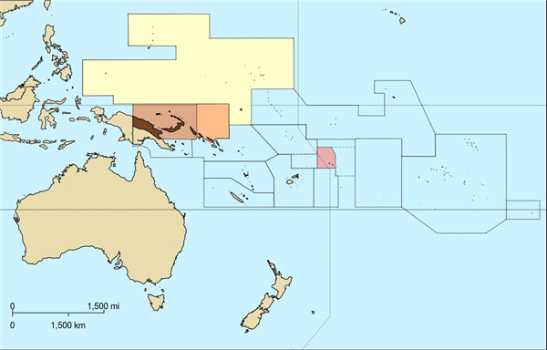 在之后的十余年里,德国通过战争、谈判、购买与国际仲裁获得了太平洋西部大量领土,并将其合并为德属新几内亚:俾斯麦群岛、北所罗门群岛、马里亚纳群岛、马绍尔群岛、加罗林群岛、帕劳、瑙鲁……而这其中最大的便是新内亚岛东北部地区。德国人将其命名为“威廉皇帝之地”,这片以皇帝命名的土地将为新内亚岛留下一道重要的边界。