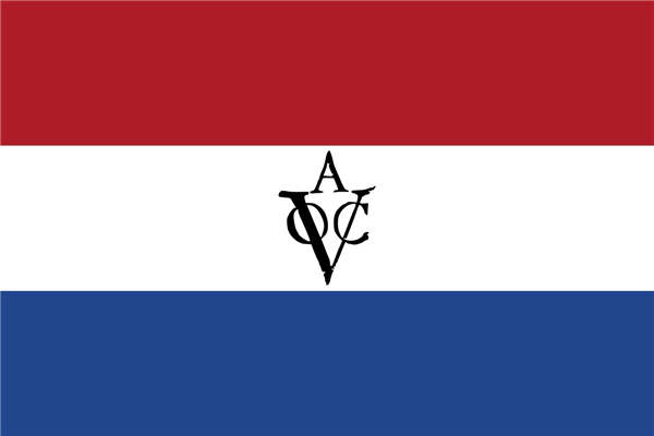 荷兰东印度公司阿姆斯特丹会所旗帜。上方的A代表该船只或设备属于阿姆斯特丹会所,若为米德尔堡会所所有则加注M字,依此类推