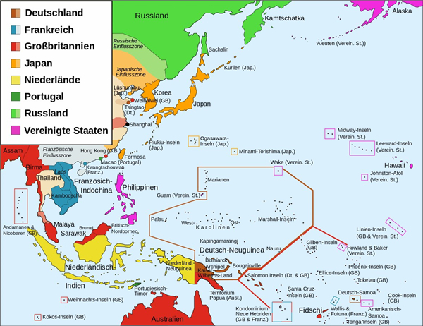 德国殖民帝国兴起之时正逢西班牙殖民时代的落幕,然而,德国人身侧有着同样实力强劲的竞争者:在北面,美国人“购买”了菲律宾;而在南面,英国人的足迹已从澳大利亚北上,新几内亚岛东南地区出现了第三股势力,新几内亚岛三足鼎立的格局,在几个新兴殖民帝国的扩张中正式成型。