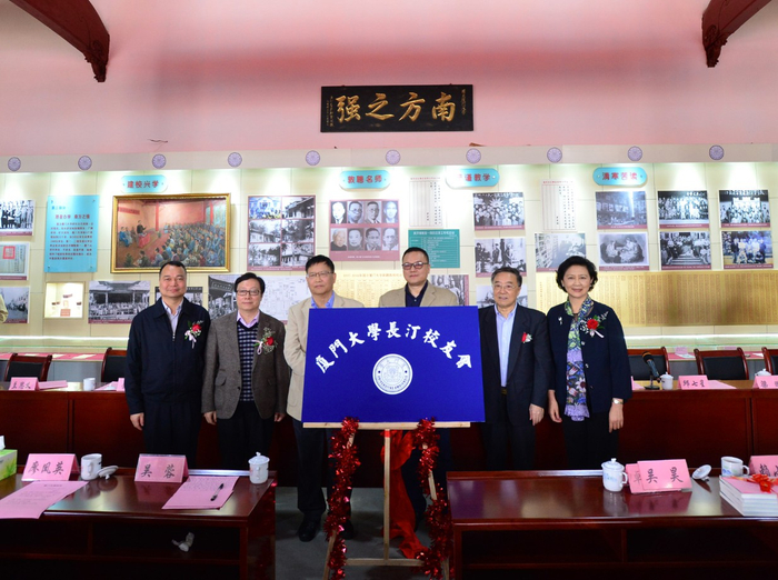 与会领导、校友共同为厦门大学长汀校友会揭牌。大会在厦门大学校歌中落下帷幕。