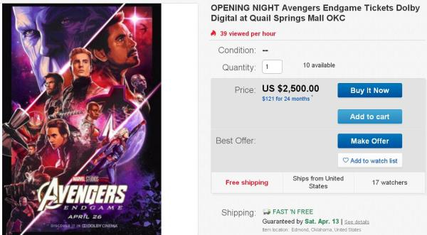 4月26日北美首映场的电影票,在eBay上已经炒到2500美元