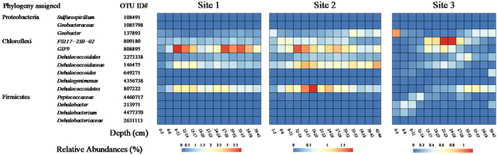 图1:沉积物钻孔中潜在脱卤功能菌的相对丰度变化