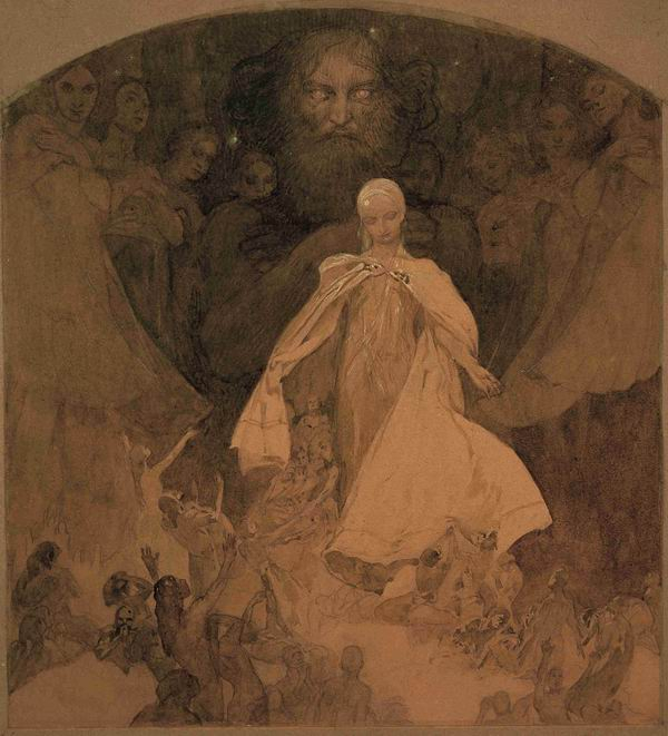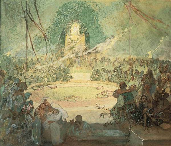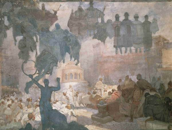 慕夏 “斯拉夫史诗”第三幅习作:《斯拉夫礼拜仪式介绍》,1912