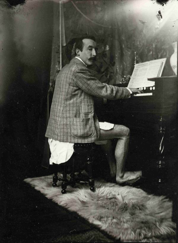 保罗·高更在慕夏位于巴黎大茅舍大街的工作室里弹奏风琴