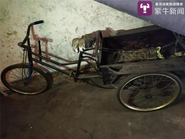 4月10日中午,扬子晚报紫牛新闻记者来到老人所住小区,看到住的车库大门紧锁,楼道内还停放着他生前拾荒用的小型三轮车。