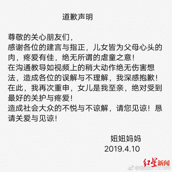 10日,该女童母亲通过微博发布一则道歉声明,称绝无虐童之意,只是在沟通教导中如视频所示动作稍大,绝无伤害之意。10日晚,网友通过多种渠道,“扒”出此前女童母亲脚踢、衣架打女童的视频。声明与事实的巨大不符,再次点燃网友怒火,11日上午,多个与此相关话题占据微博热搜榜。