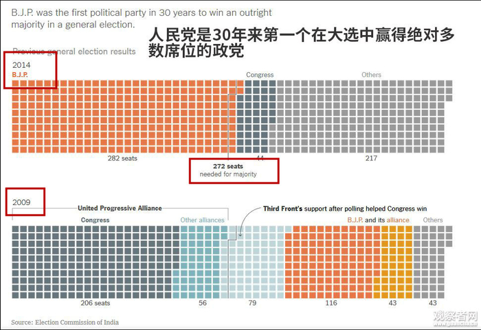 据《纽约时报》10日报道,在2014年的选举中,印度人民党赢得了一些下层种姓的支持。但占比最大的支持者还是来自高种姓。